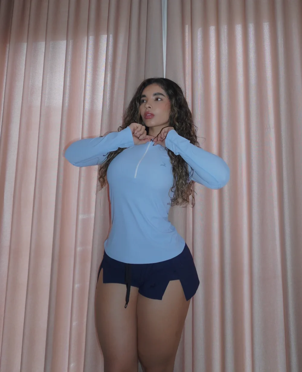 Nuestra camiseta manga larga con cremallera está diseñada para mujeres que buscan un balance perfecto entre rendimiento, estilo y confianza. Confeccionada en un tejido técnico de alta calidad, se ajusta al cuerpo como una segunda piel, realzando la silueta femenina mientras brinda máxima comodidad y transpirabilidad durante todo el día.