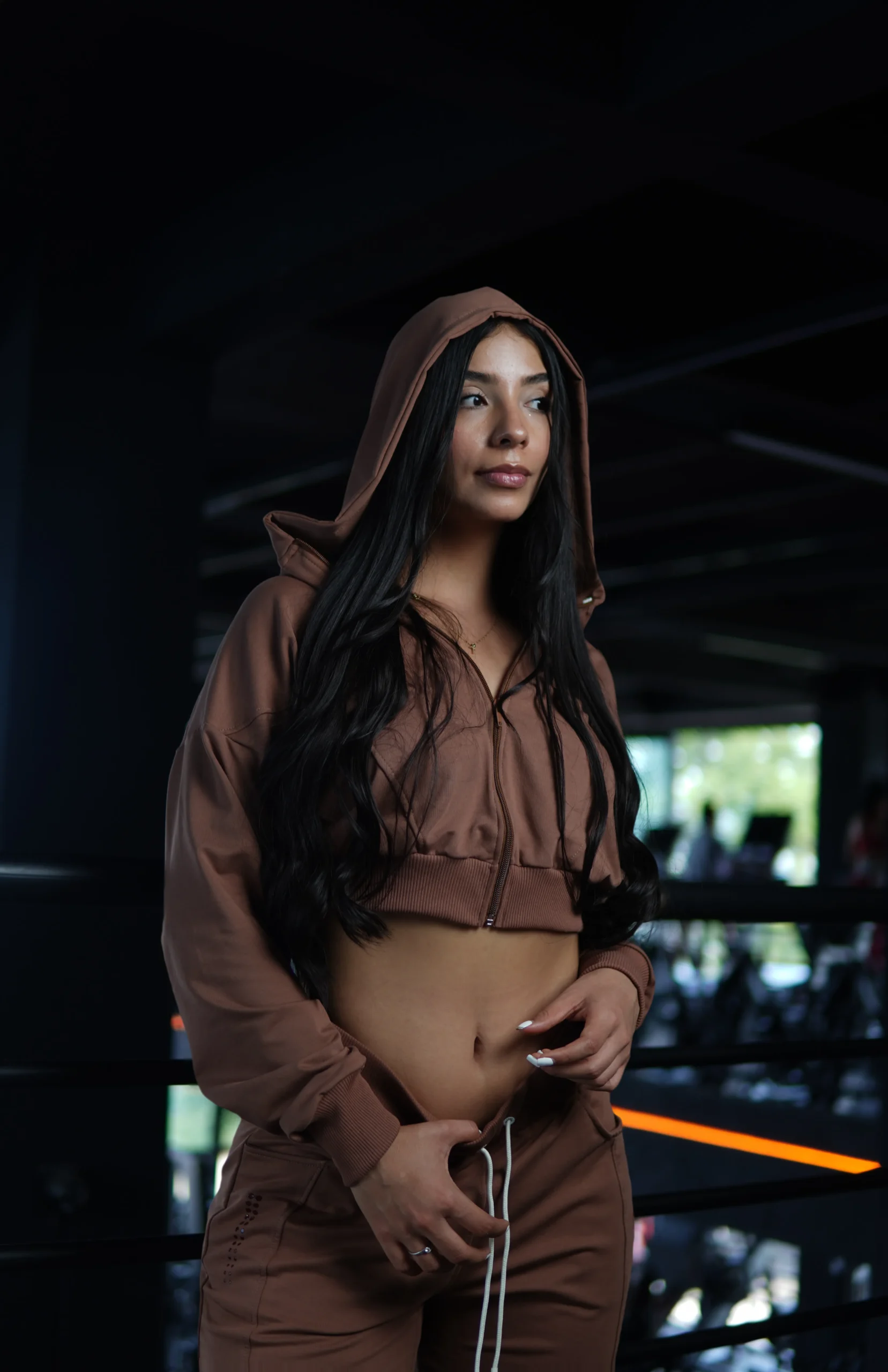 Nuestra chaqueta crop top en algodón peinado y elastano, combina estilo urbano y funcionalidad deportiva, ideal para completar tus looks con un toque moderno y atrevido.