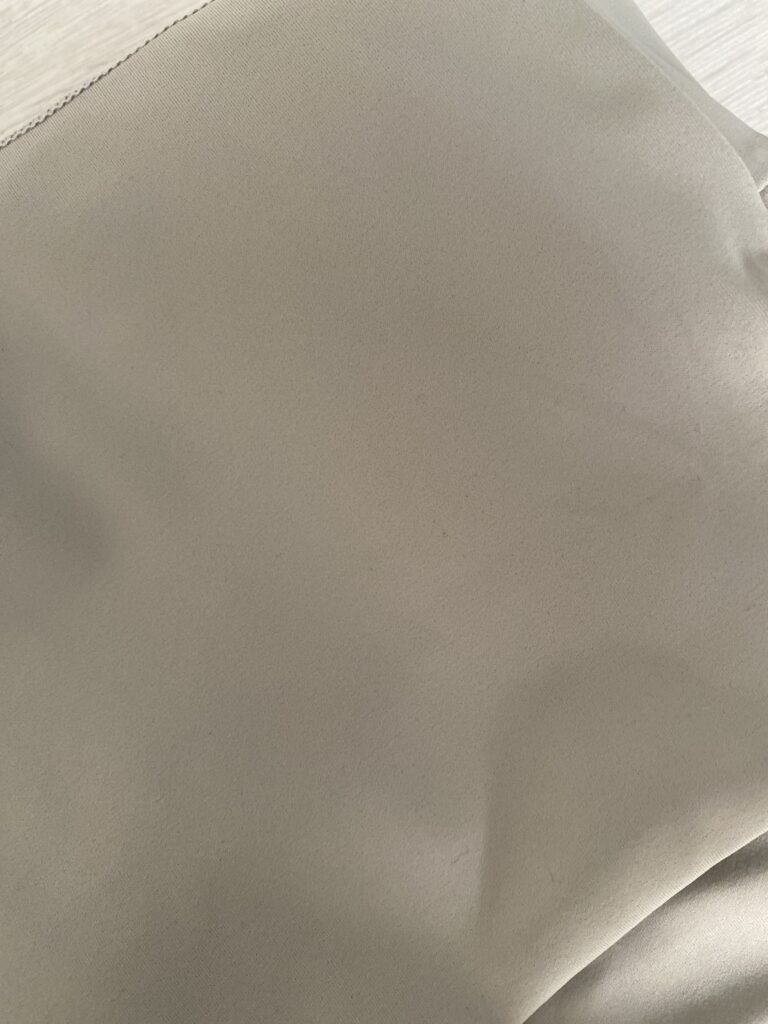 La tela es de excelente calidad, no transparente y se siente súper suave. Además, tiene un efecto que estiliza muchísimo 🖤