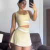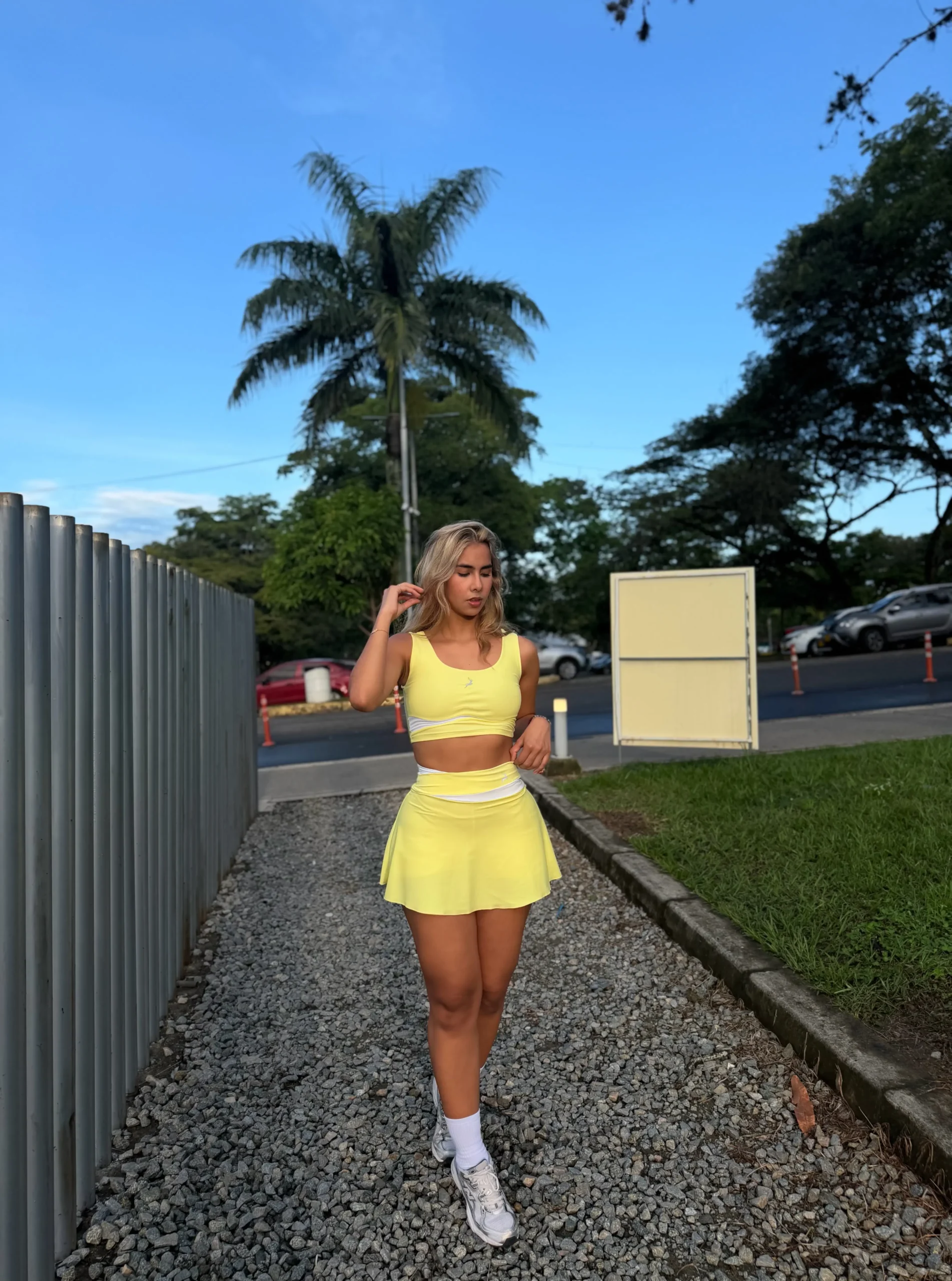 Nuestra falda deportiva está diseñada para realzar tu figura mientras te brinda máxima comodidad en cada movimiento. Confeccionada en tela premium de tacto suave y alta elasticidad, se adapta perfectamente al cuerpo sin limitarte.