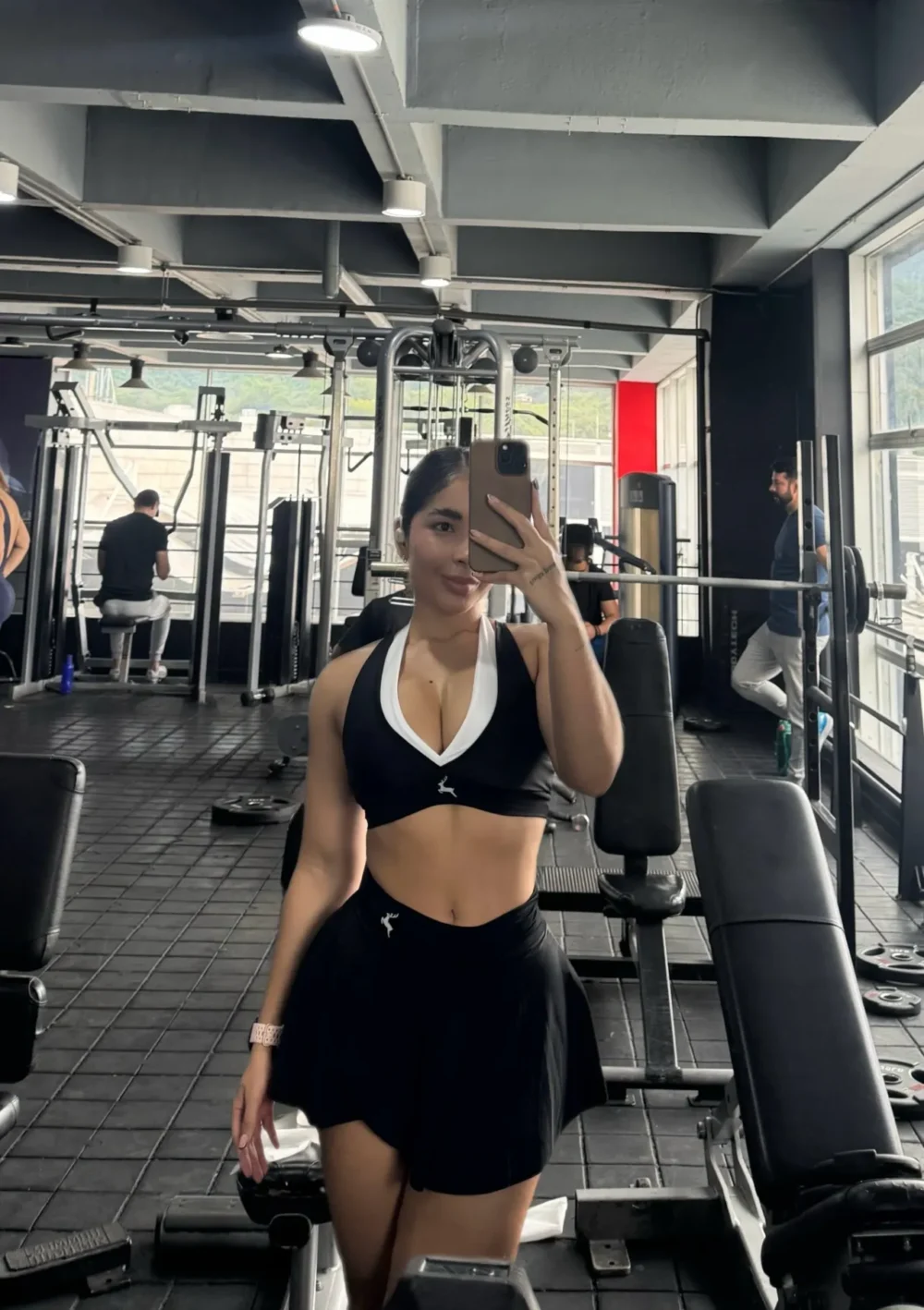 Su diseño incorpora orificios en las mangas para el pulgar, ideales para mayor sujeción y libertad de movimiento, además de un mini top interno en contraste blanco que aporta doble soporte en el busto y un detalle visual moderno y sofisticado, con tiras que sobresalen sutilmente.